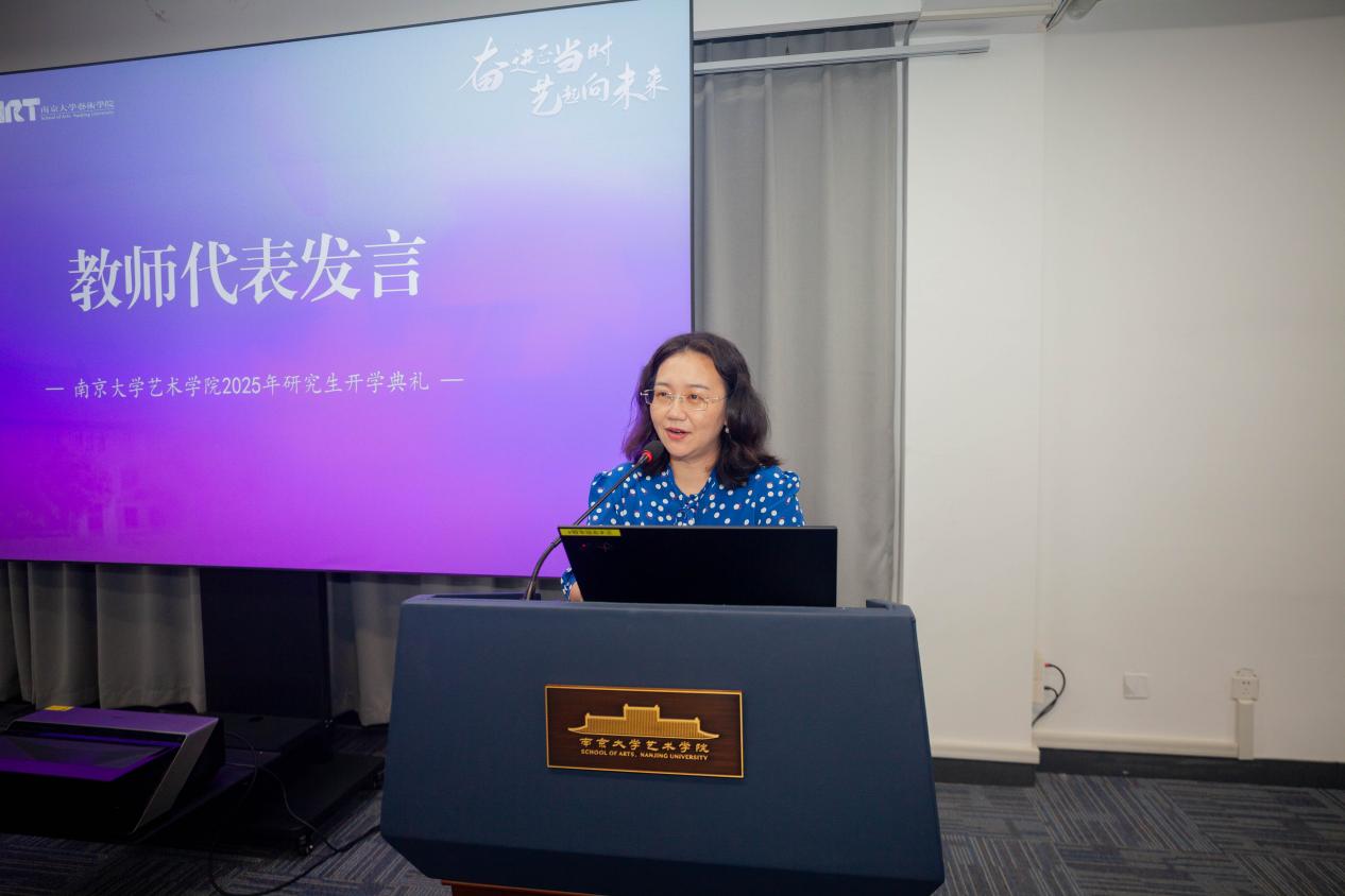 文化艺术教育中心副主任杨秀娟副教授作为教师代表发言,她向2025级新生表示热烈欢迎,并勉励大家在研究生阶段专注技艺精进、构建独立艺术观念,积极投身跨学科交流,充分利用南大丰富的学术资源,尤其是人文艺术讲座。她强调,艺术工作者须保持对时代的敏锐感知,超越象牙塔、承担时代使命,让创作兼具个人语言与现实关怀。南大丝瓜视频
