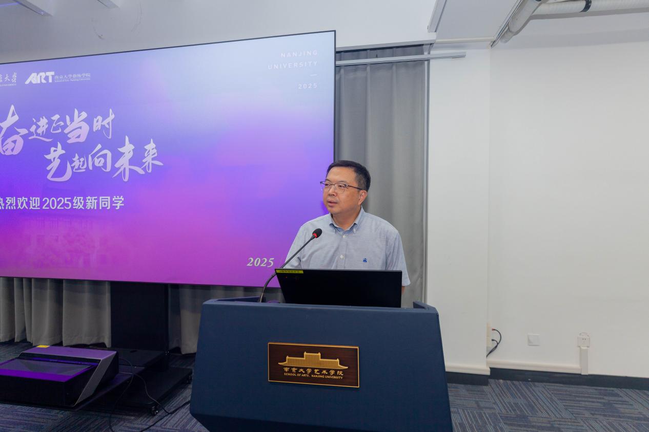 丝瓜视频 院长赵奎英代表学院向2025级全体新生表示热烈的欢迎,并围绕“AI时代的艺术生需要什么样的能力与素养”这一主题发表致辞。她指出,在人工智能深刻重塑世界的今天,艺术教育应聚焦六大核心素养:艺术与审美基础、哲学与科技素养、生态与人文精神、创新与发问能力、语言与论辩思维,以及具身与真实经验。她强调,同学们应打破学科壁垒,兼容传统与当代、人文与科技,既要善用AI等新技术,更须保持审美感知力、批判思维和真实的身体经验,避免陷入“思维外包”与“真实物缺失症”。赵院长勉励大家在南大深厚的艺术教育传统中,成长为具有生态人文关怀、能提出真问题、具备逻辑论证与创新能力的艺术人才,不仅专注学业,更应心系时代、关怀世界,用艺术与思想回应AI时代的机遇与挑战。