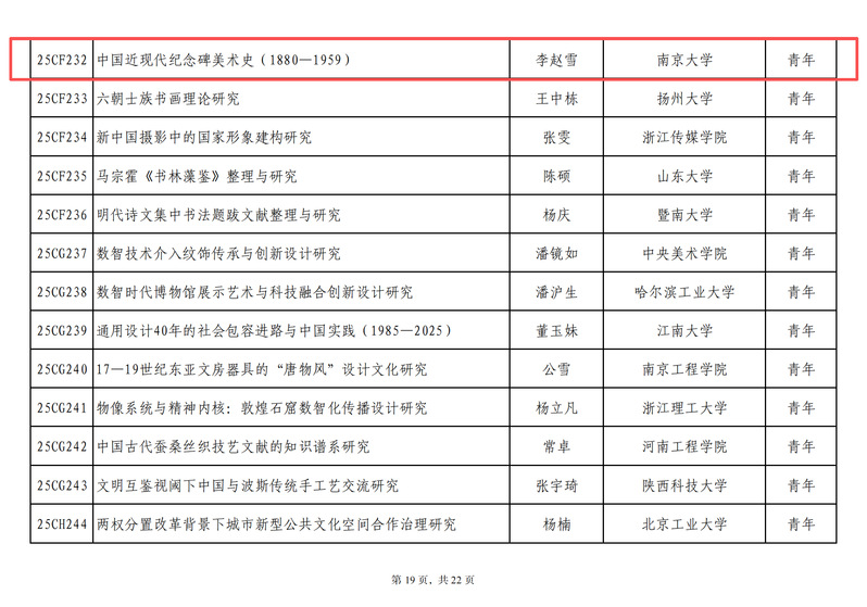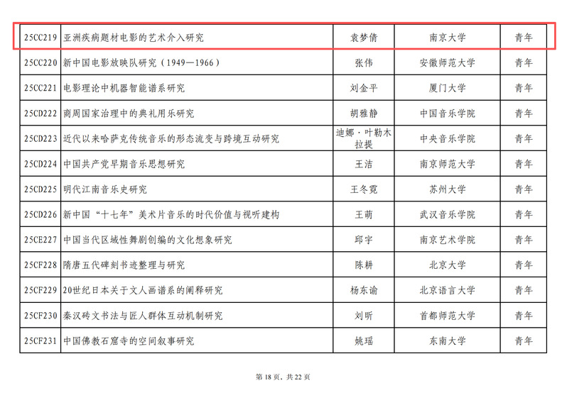 日前,2025年国家社科基金艺术学年度项目立项名单公布,我院袁梦倩“亚洲疾病题材电影的艺术介入研究”、李赵雪“中国近现代纪念碑美术史(1880-1959)”项目获2025年国家社科基金艺术学青年项目立项。