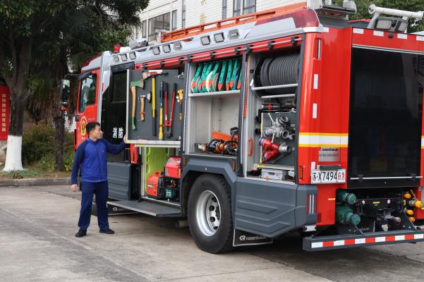 接着,党员师生们移步玉辉楼前,新区消防救援站站长孟凯与一行消防员同志已经在消防车前等候,为本次活动的第二个环节——“救援装备展示与防火逃生技巧展示”做好了准备。