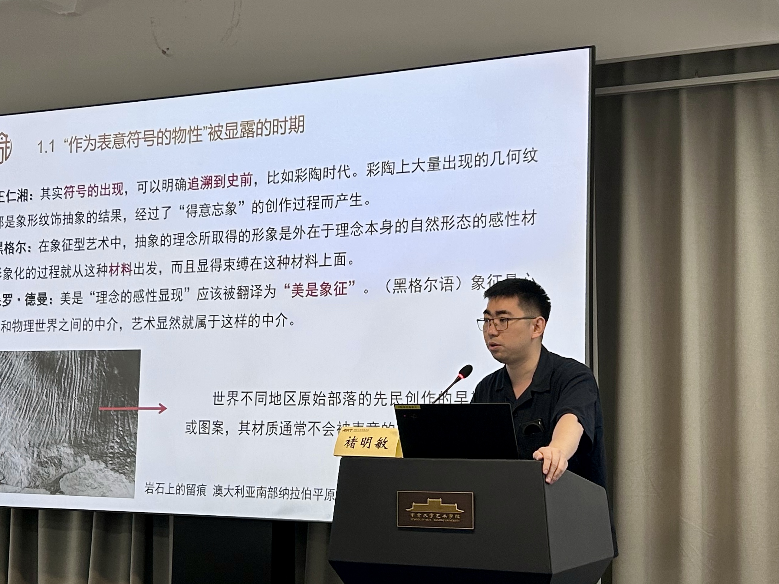 林慕蓉以《先秦共同体艺术中的物质-符号互动:从礼乐载体到情感权力机制》为题,借助滕尼斯的“共同体”理论,她从表现形态、物质载体、互动机制三个方面解析了先秦共同体艺术。