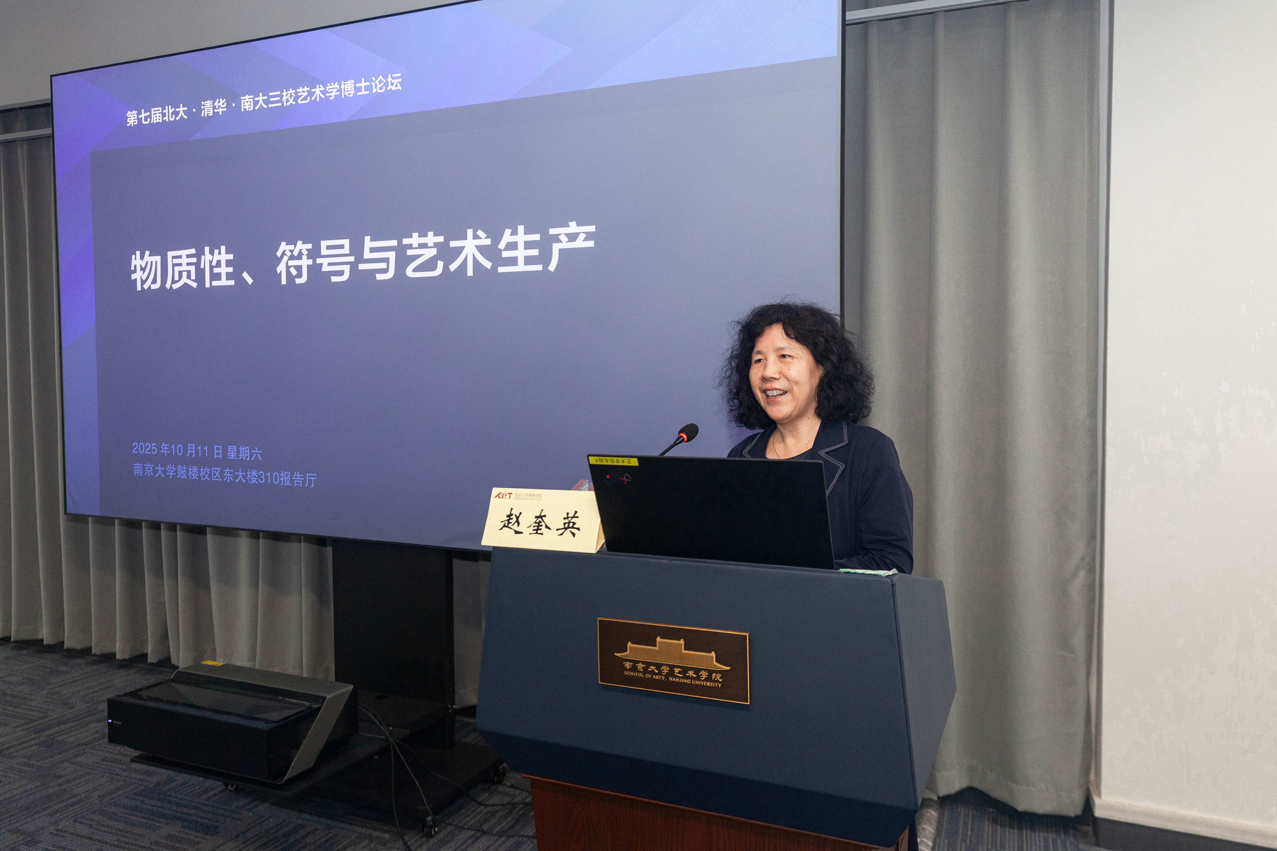 赵奎英教授代表丝瓜视频 对与会师生表示热烈欢迎,并对论坛组织团队致谢。她指出,本届论坛主题“物质性、符号与艺术生产”紧扣学科前沿,涉及艺术本体存在的核心议题,在“去物质化”与“符号化”交织的当代语境中尤具探讨价值。她期待与会博士生在交流中激发思想、深化友谊,共同推动艺术学研究的进步。