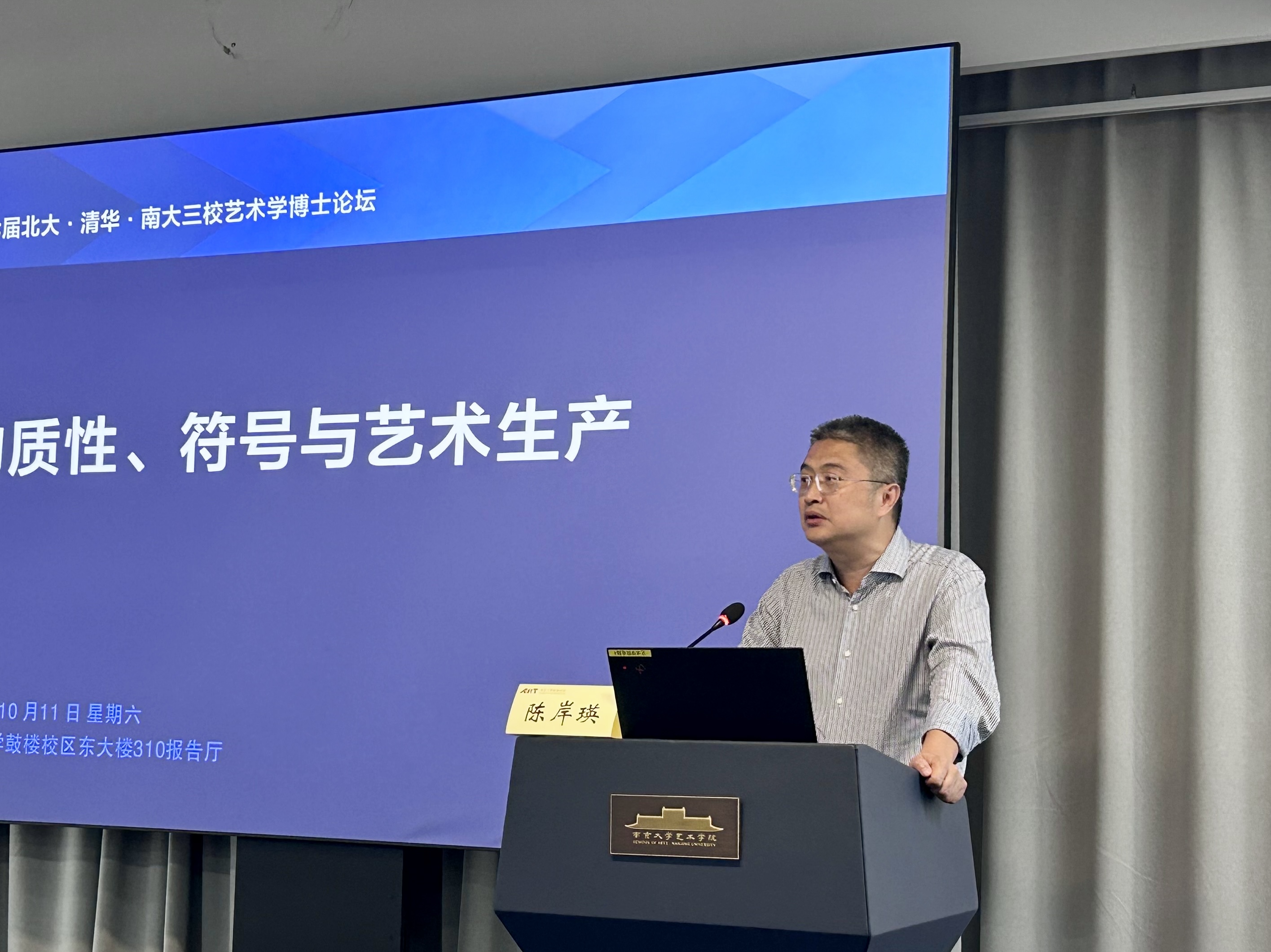 陈岸瑛教授代表清华大学美术学院对本次论坛的顺利召开表示祝贺。他指出,三校艺术学博士生论坛的举办提供了一个学术交流的平台,并鼓励与会的同学们在本次论坛中深入交流、相互学习。