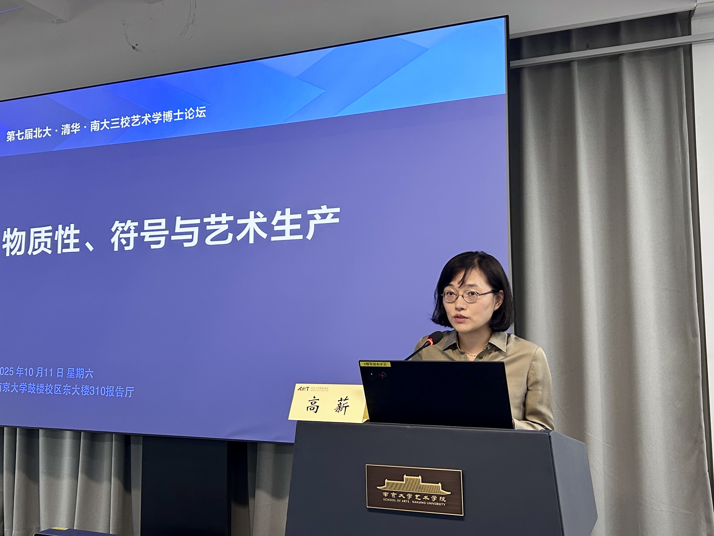 丝瓜视频 博士研究生陈静弦作为学生代表,表达了自身参与论坛交流的期盼。她谈到,七年以来,三校博士生论坛持续为青年学者搭建对话平台,使艺术学研究者能在与他人和世界持续互动的过程中深化学术研究。她认为,本次论坛主题“物质性、符号与艺术生产”涵盖技法、叙事、物的流动与技术更新等多重维度,并借里尔克的诗句强调,艺术研究应超越定义与归纳,保留开放与神秘,在真诚交流中激发思想新生。