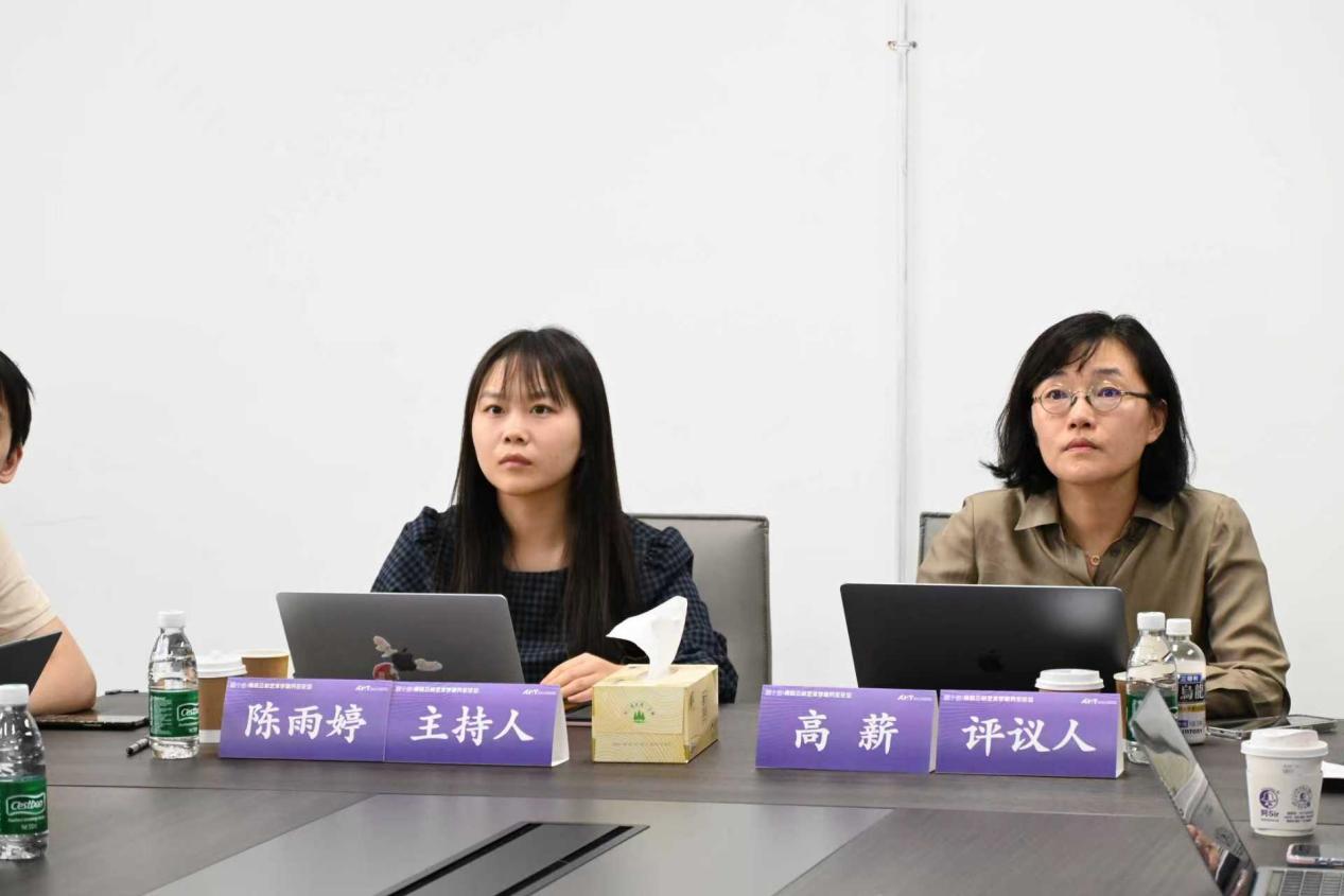第五场分组讨论的是议题是“艺术、科技与哲学的对话”,由南京丝瓜视频 博士研究生陈雨婷主持,丝瓜视频 董高薪副教授担任评议人。来自南京丝瓜视频 的靳华林分享《拉康伦理学的美学维度与视觉艺术本体研究》、丝瓜视频 李星分享《从摄影机到摄像头:论巴拉兹“视觉文化”与AI生成艺术的技术命名》、南京丝瓜视频 陈雨婷《从结构主义到后结构主义——罗莎琳·克劳斯艺术批评的范式转变》、丝瓜视频 夏钰清《人工智能艺术主体性的范式转换与实践批判》、丝瓜视频 肖瑶《技术作为一种媒介:人工智能技术与新感性》、南京丝瓜视频 业晓凯《从文字到图像——人工智能时代绘画创作逻辑的转变》、丝瓜视频 王煜宁《创作、传播与接受:人工智能时代艺术史书写的社会学转向》,高老师对于每一位发言的同学都给予了详细的点评,从文章的共性问题到主题涉及的相关理论,都给予了意见和鼓励,彰显了师者风范。