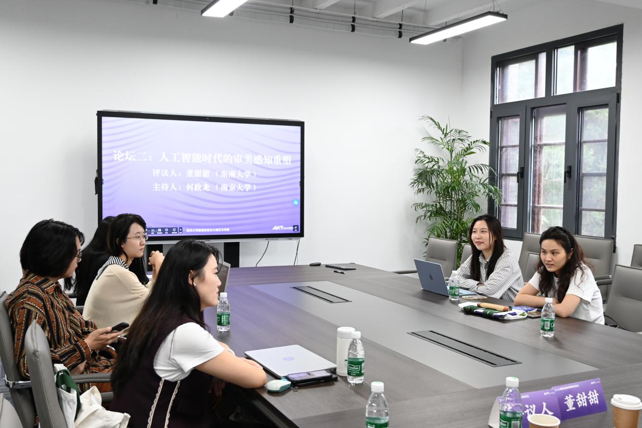 第二场分组讨论的是议题是“人工智能时代的审美感知重塑”,由丝瓜视频 博士研究生何政龙主持,东南大学丝瓜视频 董甜甜副教授担任评议。徐傲群、王慧婷 、何政龙、韩梦影、范小曼、宋垚、刘瑶七位同学分别以《宁芙的发明:癔症、摄影与舞蹈之间的姿势图像学》、《无身之声:论AI生成ASMR的声音拟象与感知重塑》、《视觉现代性进程中的窥视媒介及其知识考古》、《人工智能时代的审美感知重塑:人的主体性困境与能动性探赜》、《大语言模型工作原理的推论符号特征及其对人类感觉概念的表现可能》、《艺术作为“人性”的证明? ——机器人创作、梦境模拟与意识难题》、《赵孟頫“用笔论”与Apple Pencil的哲学对话》为主题进行了发言分享,董老师对于每一篇都进行了认真的点评,她指出对于本组议题非常感兴趣,因为目前关于人工智能的关注多集中于主体性问题,而对于人工智能的审美感知重塑问题关注还较少,本组选题范围从姿势图像学、ASMR的感知重塑、大语言模型与人类感觉概念、梦境模拟与意识问题、以及从古代赵孟頫的用笔到Apple Pencil笔触的深度思考,无不彰显了年轻学者们对于人工智能问题的思考洞见。