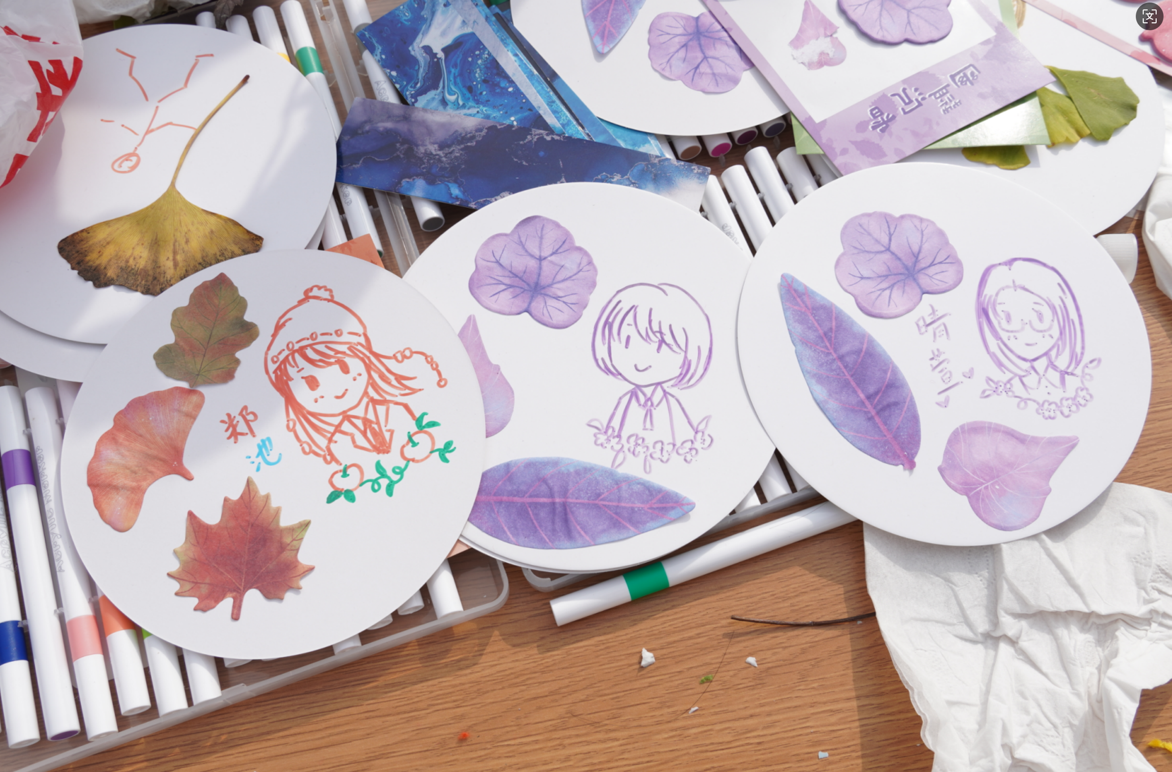 弯腰拾起的不只是落叶,更是散落一地的秋日信笺。参与者将自然的褶皱层层抚平,再把一片片形态各异、色彩斑斓的叶片贴于纸面,一场艺术与生命的对话就此展开。枫叶可做狐狸的尾巴,银杏叶亦成少女之裙摆,散落泥土间的也就不仅仅是偶遇的秋光,更是一片亲手缔造的微缩宇宙。