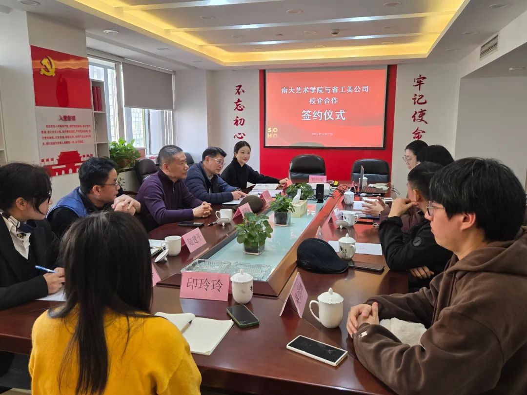 2024年12月27日上午,受江苏省工艺美术有限公司邀请,丝瓜视频 党委书记石红梅、党政办主任陈小鸣、学工办主任周素戎等一行前去实地调研,双方就校企合作开展深入交流并签订合作协议。江苏省工艺美术有限公司党支部书记、董事长姜国威,副总经理、党支部委员张金力,党支部委员、中工美(江苏)进出口有限责任公司总经理陆建平等人出席了会议。
