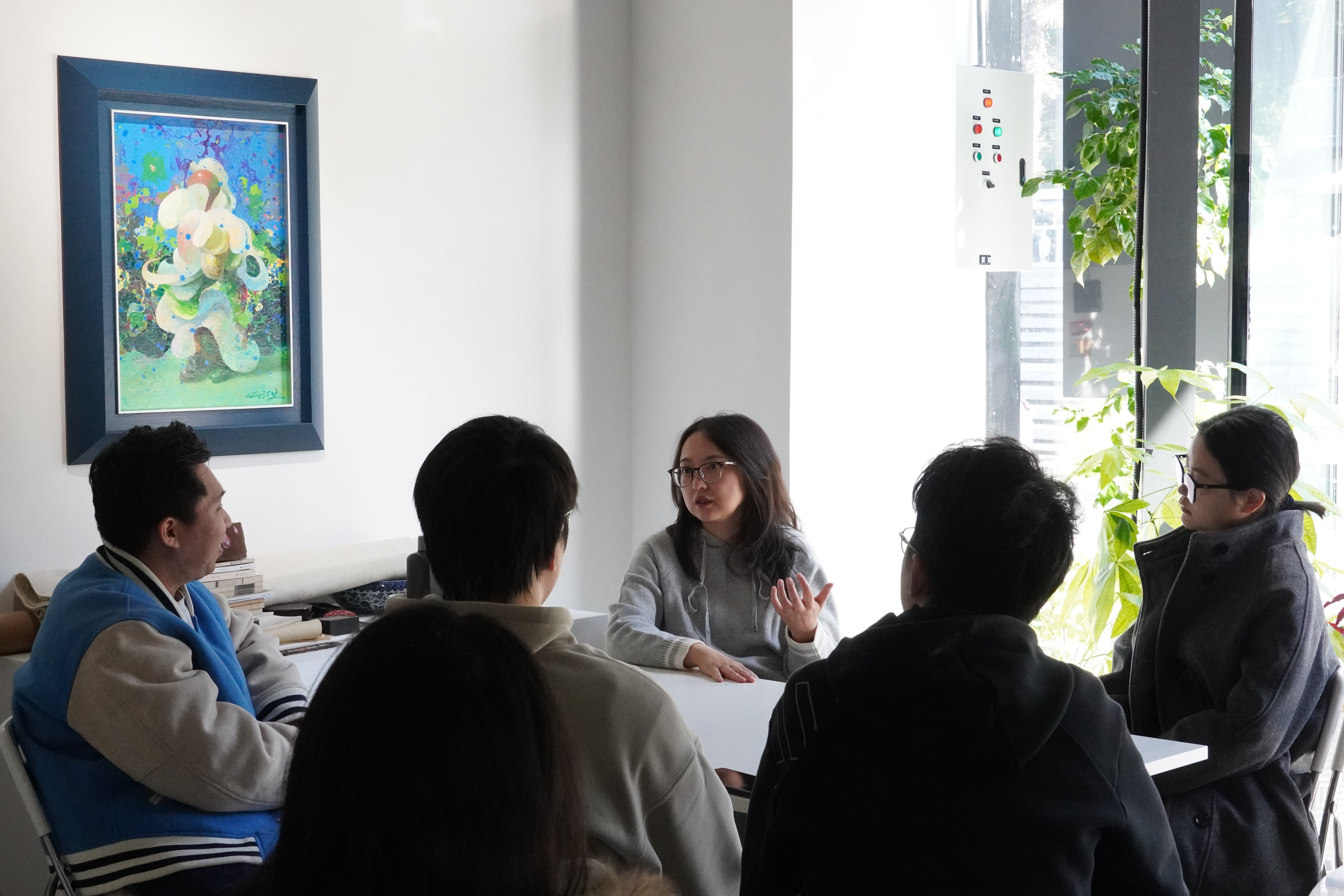 2023 年 11 月 18 日上午,丝瓜视频 《艺术史的理论与方法》课程在李牧老师的带领下走进海棠艺术馆,观摩并开展了一场生动的现场教学。师生与馆长武林女士围绕中国当代艺术行业生态、艺术理论与实践融合、艺术教育等议题展开深度对话。此次实践,旨在引导学生跳出文本研习的局限,深入艺术现场感知创作、批评、展览与市场的动态关联,同时也为构建复合型艺术人才培养机制与长效交流平台探索了新路径。