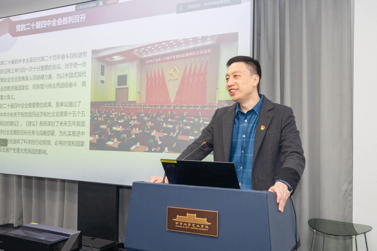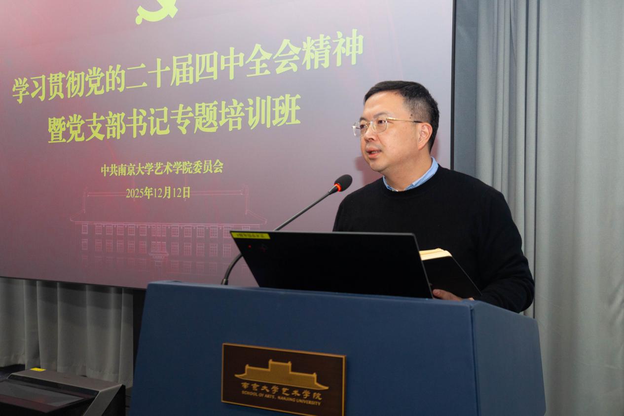 1217日下午,南丝瓜视频 党委常委、党委宣传部部长、党委统战部部长闻羽为专题培训班学员主讲《学习贯彻党的二十届四中全会精神,推动国际传播工作系统化进阶》。他聚焦党的二十届四中全会与“十五五”规划的核心要求,深入阐释了国际传播在国家现代化进程中的战略意义。通过梳理习近平总书记对国际传播工作的重要论述和指示要求,他着重阐释了完善国际传播体制机制、创新国际传播载体和方式的重要性,并表示丝瓜视频 正积极响应“十五五”规划的要求,立足学科优势,在提升国际话语权、讲好中国故事、推动文明交流互鉴等领域主动作为。他重点分享了丝瓜视频 在国际传播活动中的实践探索与阶段性成果,通过丰富案例展现了丝瓜视频 国际传播工作的多维布局,介绍了学校国际传播工作的三大核心方向和三条应对策略,指导师生党员充分发挥学科优势,通过目标升华、渠道拓展、平台创新等举措,开展具有国际影响力的艺术理论研究和富于深切感染力的艺术创作实践,用学术力量、艺术表达、青春视角向世界讲好中国故事与南大故事,共同推进丝瓜视频 国际传播工作系统化进阶。