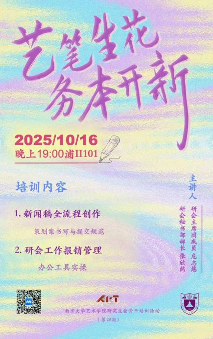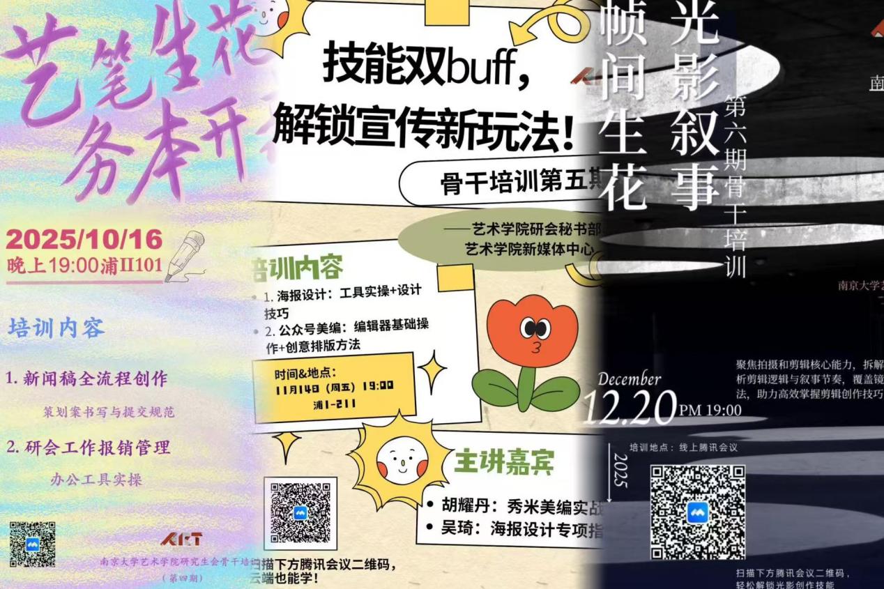 为全面提升研究生会成员的综合素质与宣传实务能力,推动新成员快速融入工作节奏、夯实业务基础、提升艺术素养,丝瓜视频 研究生会于2025年秋季学期精心策划并组织了三期骨干培训活动。系列活动围绕新时代校园文化传播的核心需求,聚焦新闻写作与综合实务、推文排版与海报设计、拍摄与剪辑三大模块,展开系统而深入的研习,为学院宣传工作注入专业动能与创意活力。