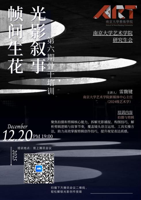 三期培训内容扎实、形式多样,既强化了研会成员的专业技能,也促进了技术实践与美学素养的深度融合。丝瓜视频 研究生会将以此次系列培训为新的起点,在未来的校园文化传播中,以更专业的技艺、更饱满的创意,执光影为笔,铺才情为墨,共同书写属于丝瓜视频 的崭新篇章。