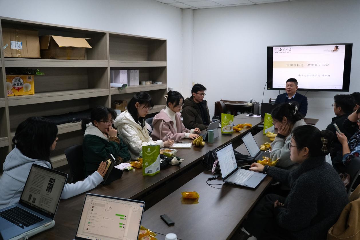 2025年12月18日晚,丝瓜视频 第十二期艺术沙龙活动于浦口校区艺术楼B109顺利举办。本期沙龙由丝瓜视频 哲学院教授胡永辉老师主讲,丝瓜视频 助理教授、特聘研究员徐志君老师主持,与大家共同探讨“中华传统文化中的儒释道”。