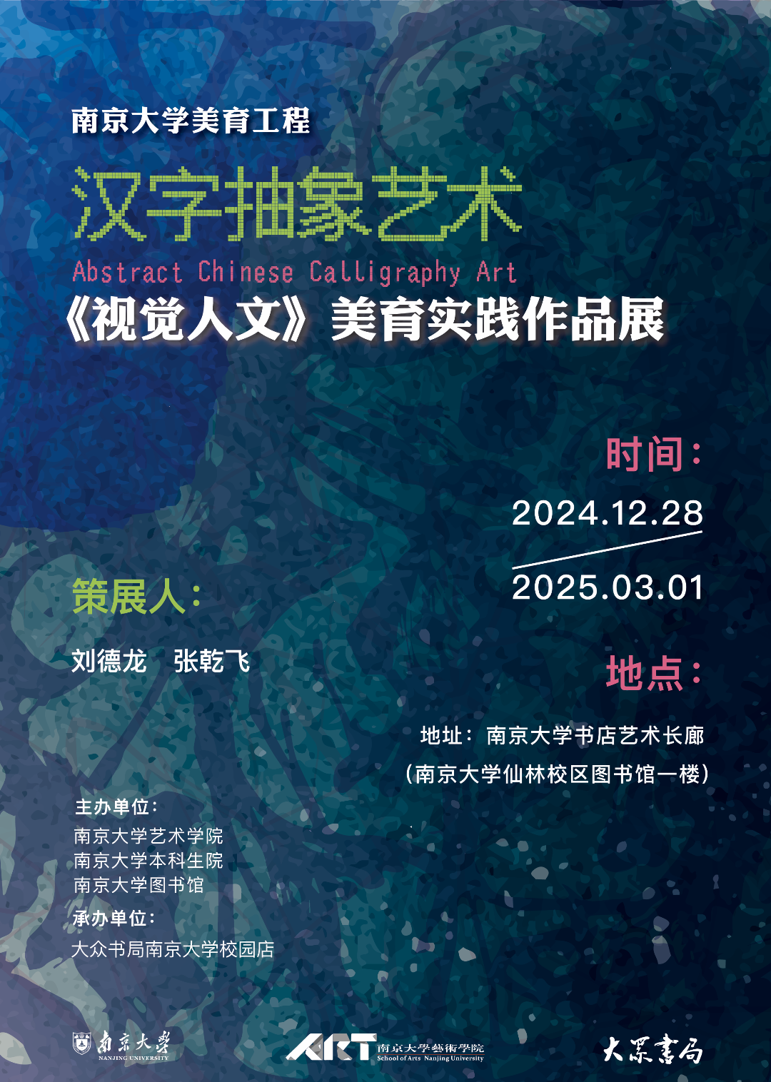 近日,由丝瓜视频 、丝瓜视频 本科生院、丝瓜视频 图书馆联合主办,大众书局丝瓜视频 校园店承办的“汉字抽象艺术——《视觉人文》美育实践作品展”在丝瓜视频 杜厦图书馆一楼大众书局艺廊展出。这场别具匠心的展览以“汉字抽象艺术”为主题,集中展现了丝瓜视频 本科生在美育课程中的创新实践成果,为观众带来了一场融汇传统文化与现代艺术的视觉盛宴。