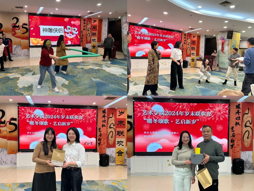 “金蛇送喜,迎新纳福”,总结会后,学院举行了迎新联欢会,在“你演我猜”“蒙面打人”“抢椅子”等游戏的欢乐氛围中,教职工们欢聚一堂、绽放风采,传递新年的喜悦和祝福。