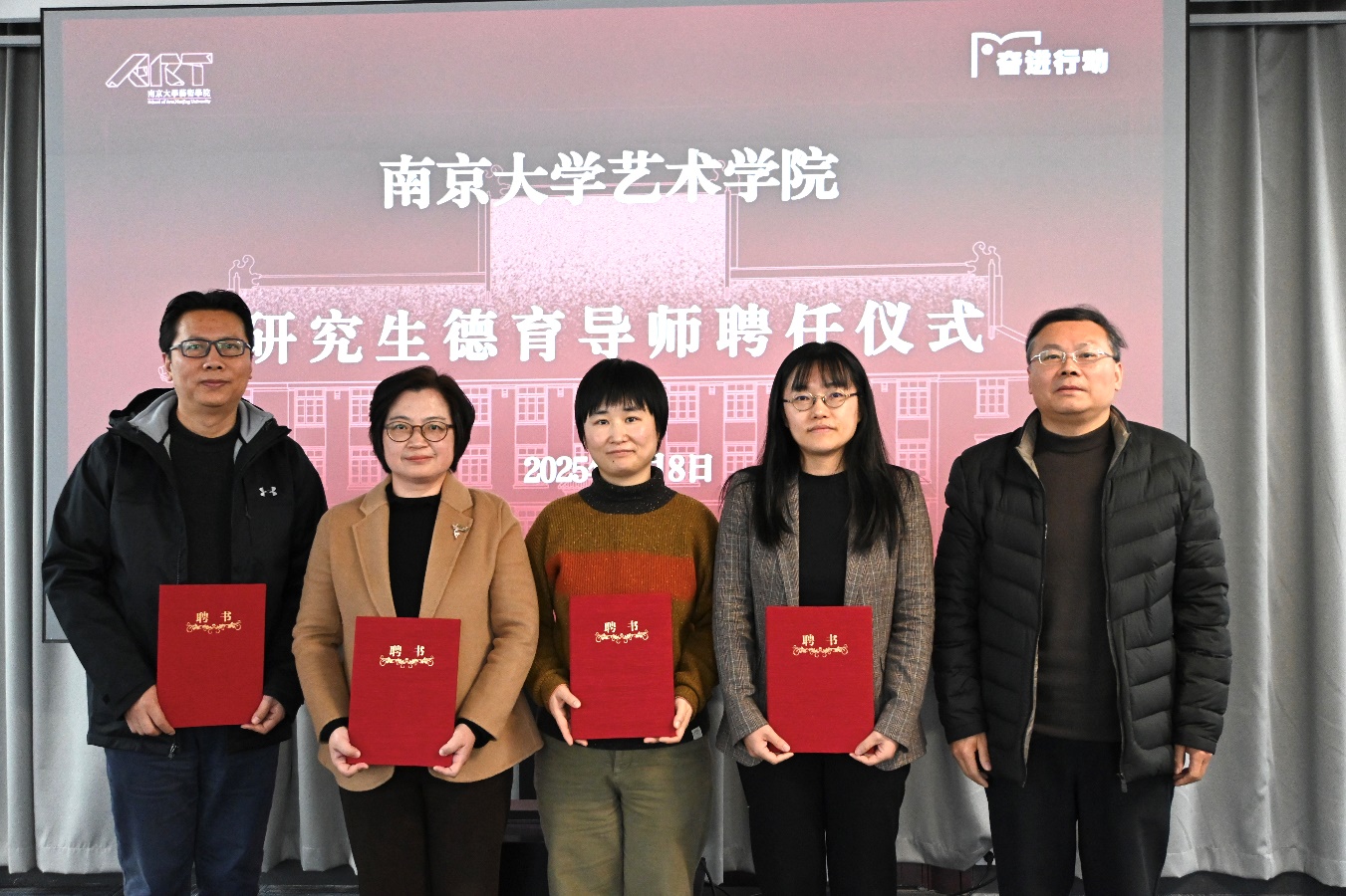 会上还举行了研究生德育导师聘任仪式,由赵奎英副院长宣读聘任决定,何成洲院长为季峰、尚莲霞、吴维忆、高薪四位老师颁发聘书。