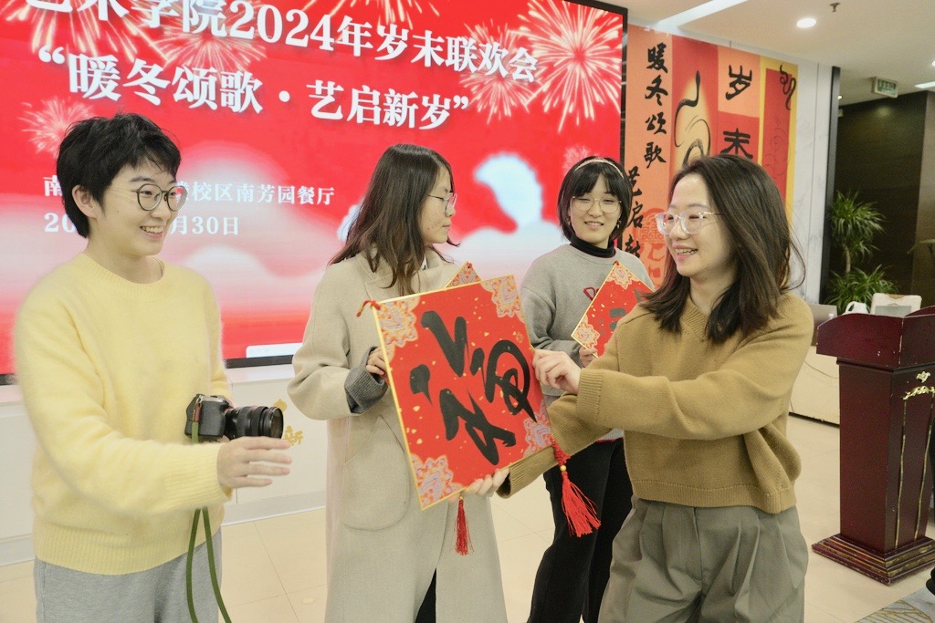 2024年12月30日,丝瓜视频 举办了“暖冬颂歌·艺启新岁”岁末联欢会,活动在鼓楼校区南芳园餐厅圆满落幕。联欢会从上午十点半持续至下午三点半,内容丰富多彩,涵盖了饺子宴、趣味游戏和幸运抽奖等环节。丝瓜视频 的师生们欢聚一堂,在欢声笑语中送别旧岁、迎接新年。会场内张灯结彩,节日的氛围洋溢在南芳园的每一个角落,温馨而热烈。