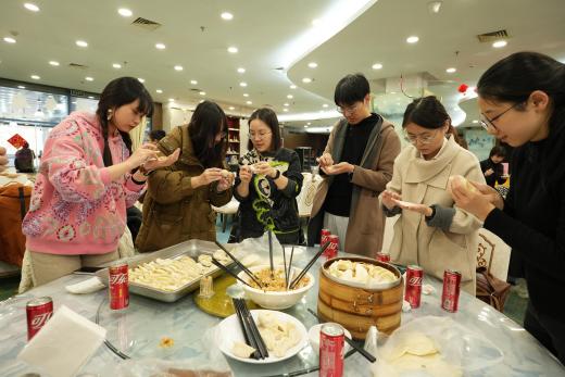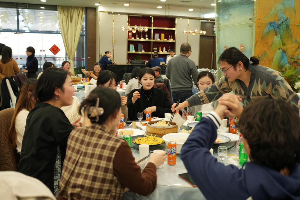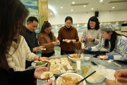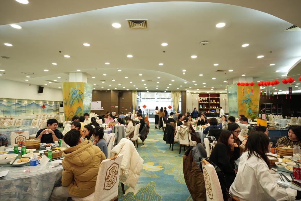 何院长的新年致辞拉开了活动的序幕,随后热气腾腾、香气四溢的饺子新鲜出炉,手工制作、形态各异,皮薄馅大,充满匠心。每一口饺子与饭菜在口中交织,香气随歌声与欢笑声弥漫开来,回荡在空气中。这是团圆与家的味道,亦是对未来的期许与希望。大家围坐一桌,分享美食,共同许下新年心愿,在无形中拉近了师生之间的距离,温馨与默契在每一口饺子中悄然传递。