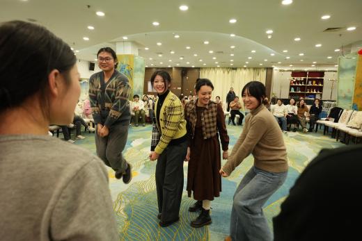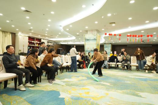 首先登场的是“蒙眼打人”,这个游戏充满了惊喜和刺激,让大家掌声不断。“你划我猜”环节则考验着团队成员之间的默契,同学们的比划和猜测引发了阵阵欢笑。而最后的“听歌识曲”游戏更是将活动推向了高潮,大家随着熟悉的旋律一起哼唱沉浸其中,抢答歌曲,点燃了对音乐的热爱,现场气氛热烈。