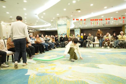 在欢声笑语中,大家吃得心满意足,短暂停箸休息后,下午场的趣味游戏就此拉开序幕。师生们分成了六个小组,展开了激烈而有趣的角逐。游戏采用积分制,各小组通过参与不同游戏来累积积分,最终根据积分高低决出胜负。
