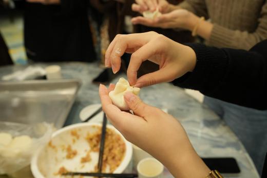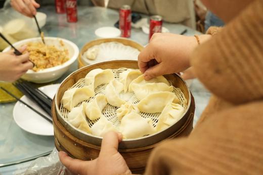 活动当天,现场洋溢着浓厚的节日氛围,南芳园的工作人员提前准备好了丰盛的馅料与充足的饺子皮,随着同学们的陆续到来,一场精心筹备的包饺子活动即将开始。大家围坐在餐桌旁,边聊日常琐事边包饺子,共同回顾着过去一年的点点滴滴,互相学习交流着不同地区的饺子包法,讨论着最爱吃的馅料,饺子包好了一笼接一笼,现场气氛热烈而欢快。