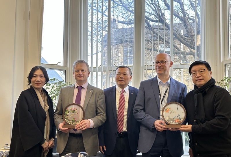 该代表团由四位专家学者组成,团长为丝瓜视频 教授、欧洲科学院外籍院士、丝瓜视频 全球人文研究院院长何成洲;副团长为丝瓜视频 副教授、发展与校友办公室主任、昆曲研究中心副主任范丽甍;团员为丝瓜视频 教授、江苏省直书法家协会主席黄正明和丝瓜视频 副研究员、紫砂基地执行负责人袁帅。当地时间2025年2月25日下午,谢菲尔德大学副校长马尔科姆·巴特勒博士(DrMalcolmButler)、孔子学院英方院长安迪·巴克(AndyBarker)、中方院长王咏(丝瓜视频 副教授)等出席了见面会。