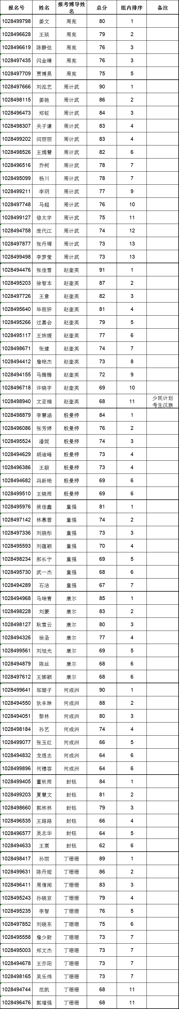 通过人数为报考该导师总人数的70%(如遇小数,四舍五入)。现将资格审核成绩和结果公布如下: