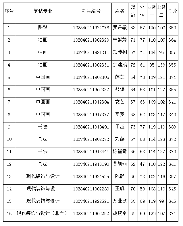 三、各专业拟参加复试名单