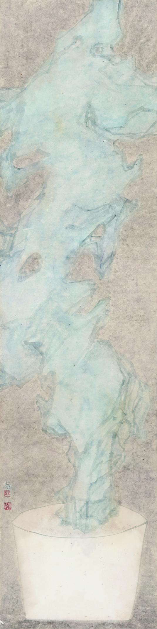 王静 《我有一块太湖石之一》 纸本设色 134cm×33cm 2016年