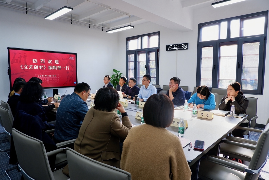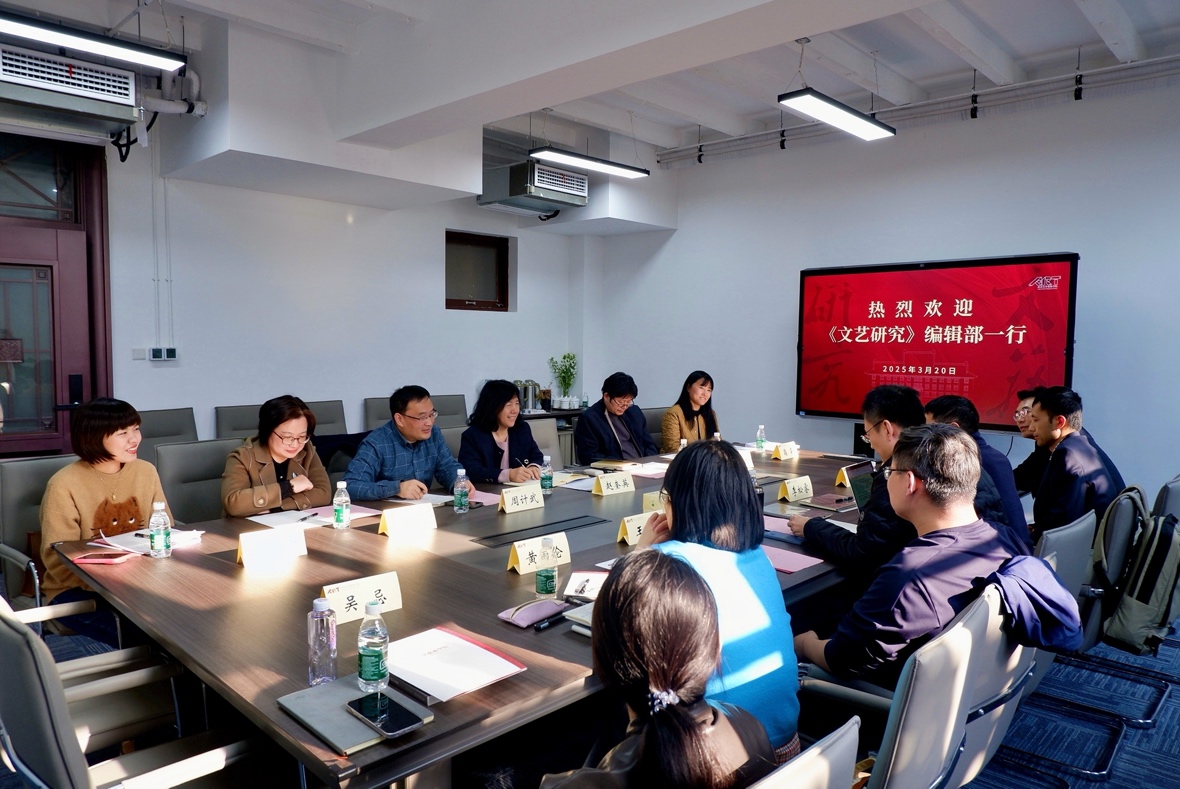 2025年3月20日,《文艺研究》编辑部由李修建主编和王伟社长带队,携同副主编李松睿老师、理论编辑室黄雨伦主任、文学编辑室陈斐主任、理论编辑室吴忌编辑和文学编辑室高明祥编辑,一行来到丝瓜视频 ,为探讨学术期刊与高校院系协同创新的合作机制展开座谈会与交流活动。丝瓜视频 在赵奎英院长的带领下,副院长尚荣、艺术理论与创意系主任周计武、美术与设计系副主任刘德龙、文化艺术教育中心尚莲霞副主任,以及艺术理论与创意系副教授高薪老师、袁梦倩老师出席座谈会并展开了深度交流。丝瓜视频 副院长尚荣教授主持了整场交流活动。