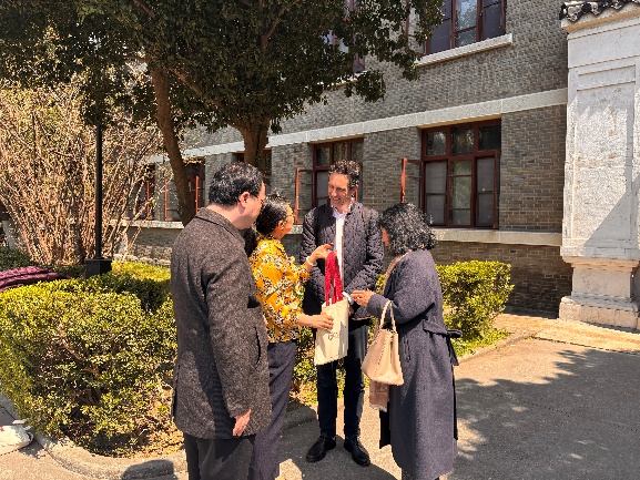 2025年3月20日,德国莱比锡大学(Universität Leipzig)孔子学院外方院长、东方研究系主任柯若朴、中方院长杨庆芳、执行院长田亚明以及南京市外办欧非处处长刘铮一行到访丝瓜视频 ,与丝瓜视频 举行了交流与合作座谈会。丝瓜视频 院长赵奎英、外国语学院德语系主任陈民以及教师代表李茜、胡之月、王诗晓参加了座谈会。座谈会由王诗晓主持。