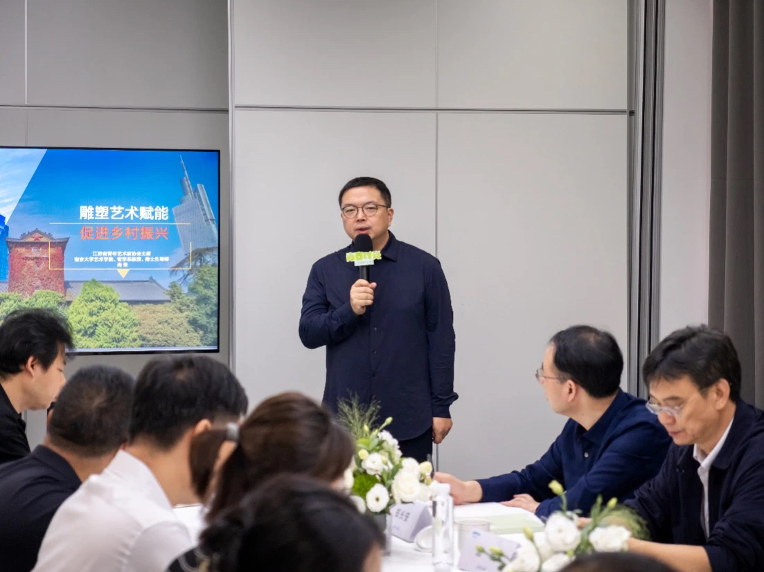 在开幕式之后,进行了“艺术赋能、乡村振兴”江苏青年艺术家发展论坛活动,论坛主要探讨如何以艺术链接起人与自然,助推乡村建设,以艺术融合加快乡村建设的步调,实现双向赋能与深度融合。尚荣教授做主旨发言,在论坛中分享了亲身参与的三个案例,并表示“雕塑作品不能脱离人民群众的需要,不但要强化文化的顶层设计,也要考虑当地的文化底蕴来塑造”。随后,青年艺术家们分别从绘画、书法、影视、策展、设计、摄影、新闻、协会工作等领域发表了自身对“艺术赋能、乡村振兴”的理解和观点,他们纷纷表示艺术赋能乡村振兴不是简单的机械融入,更不是一劳永逸的,乡村不仅仅是对应城市的物理空间,更是文化传承的基因库与样本地。指出了目前存在的问题,提出了有效的建设方案。江苏省美协副主席、丝瓜视频 副院长陆庆龙教授对与会的青年专家的发言做了评价。他认为青年艺术家代表们从各自的专业出发,结合实践热烈探讨,交流经验,此次论坛思想碰撞,成果丰厚。作为青年艺术家有责任以艺术唤醒乡村之美,以艺术赋能乡村振兴。此次论坛活动是青年艺术家协会深入贯彻党的二十大和中央农村工作会议精神的具体举措,引导青年艺术家用艺术赋能乡村振兴,为乡村振兴注入强大精神力量。