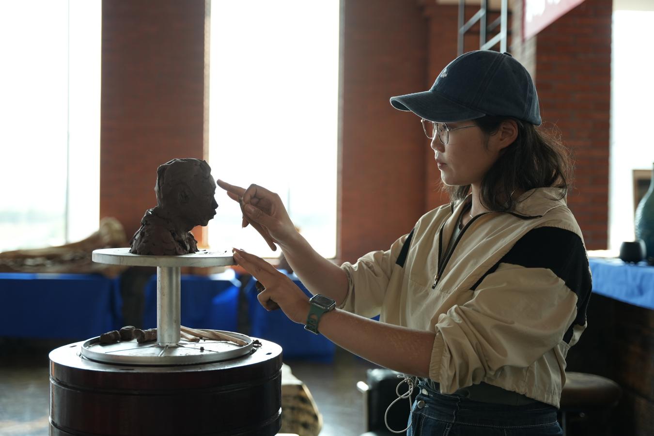 师生一行在村支书王常友、蒙安夕舍民宿主理人王庆能等带领下参观了红枫湖、晚樱园、茶园、屯堡文化据点等地,熟悉了解右二村及周边情况。在这片宁静土地上,师生们感受着大自然的呼吸,用心观察、细心记录身边的一草一木、一砖一瓦。在与同学们的采风交流中,陆庆龙老师也分享了自己的创作心得,要“感受生活、感受乡野、感受人生”,把握好在乡野间体悟和绘画的机会。陆庆龙、刘德龙、任艳明三位老师分别选择了右二村水田和当地村民进行油画、雕塑示范和技法讲解,引导同学们如何在乡野中抓住表现重点。
