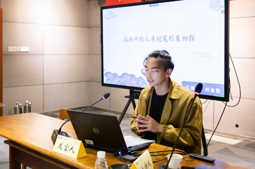 厦门大学的叶金阳同学作了“汉画中的人身蛇尾形象初探”为题的报告,“人身蛇尾”形象是汉代图像中相当常见的题材,广泛分布于全国各地,其以搜集、整理的各地区出土的“人身蛇尾”图像为材料基础,以对比分析的方式探寻其基本图像特征及其地域特征,结合文献和图像志探析“人身蛇尾”图像的具体题材,并分析了这些题材出现的原因。最后,结合图像配置与其所处丧葬空间的位置阐明“人身蛇尾”形象在汉代丧葬艺术中的意义与作用。