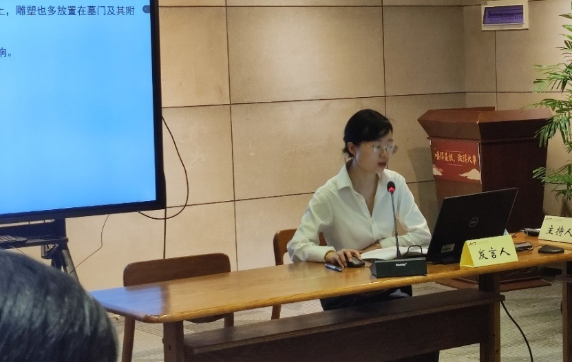 四川大学皮艾琳博士生作了“费县刘家疃汉画像石墓整体图像配置观察”为题的报告,她认为刘家疃汉墓画像具有清晰的总体层次与整体设计逻辑,并能与墓葬的结构和功能相互配合,表现为具有结构意义的装饰性画像、以墓主为主体的理想生活画像和营造辟邪与升仙环境画像共三个层次,以此展现了汉画像石墓的整体图像配置设计与汉代祭祀、辟邪与升仙等丧葬观念。