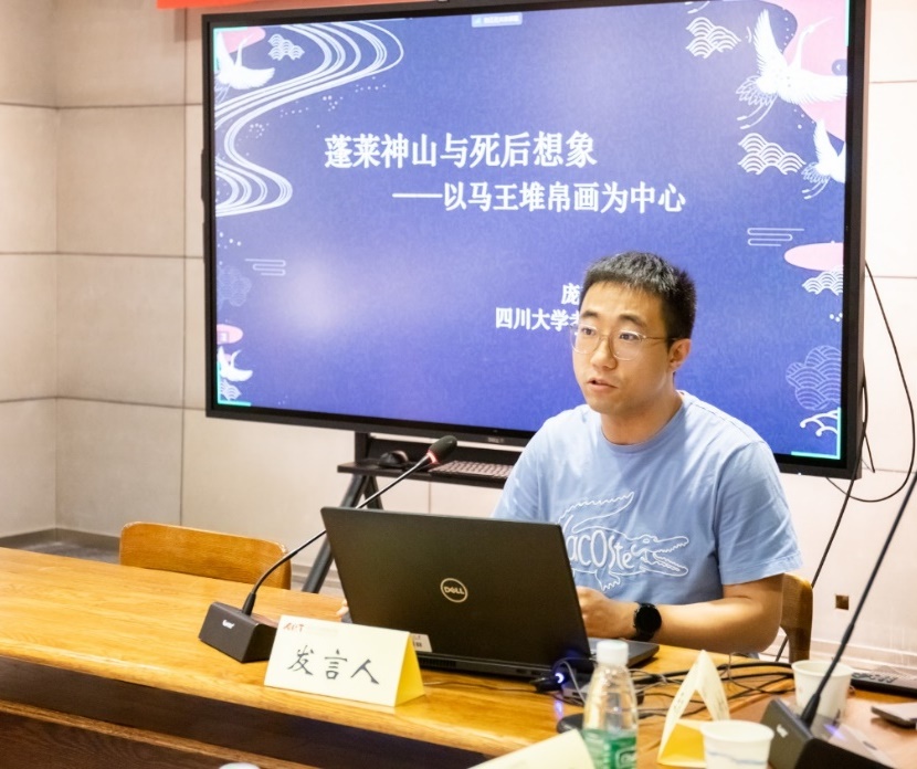 四川大学的庞政副研究员作了“蓬莱神山与死后想象——以马王堆帛画为中心”为题的报告,他结合文献和考古材料,指出蓬莱神山大体存在两种形态:一种表现为横向排列的三座独立山峰,另一种即拥有壶状外形的神山。以马王堆汉墓出土的两幅帛画为代表的壶形是西汉时期壶形神山的典型图式,由上升的巨龙蟠曲而成,以龙的躯体为线条,构成壶的外形轮廓,象征着海中蓬莱仙山。升天并非是死后唯一的选择,壶内与壶外均是对死后世界的美好期望。