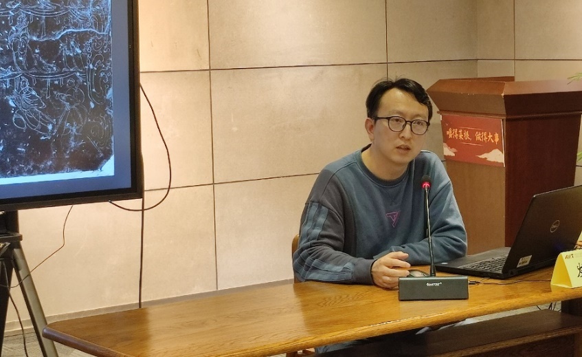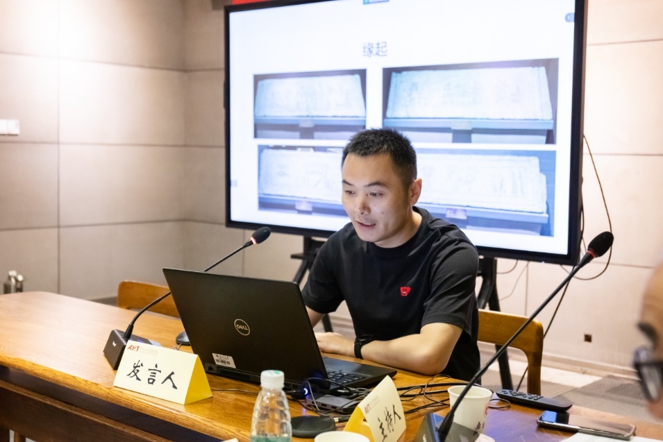 华东师范大学的李文平同学作了“论三国时期的‘白画’”为题的报告,他指出,“白画”是中国美术史中极为重要的一个概念。通过对三国曹魏墓葬出土的“白画”刻铭石牌的解读,与图像表现相关的“白画”技法或工艺在三国时期就已出现。根据相应的出土实物来看,当时已将在琥珀等硬质器物表面素刻线条的技法称为“白画”。苏州黑松林出土线刻画像石屏风上的人物图像就是采用“白画”技法刻绘而成的代表作品,反映了三国时期人物画面貌。“白画”概念在三国时期出现,孙吴时期画像石大多采用线条刻绘而成,反映了三国时期非常重视线条在图像表现中的作用。对比孙吴与东晋南朝的线画图像,可知以线造型的人物画技法在三国时期或己初步形成,两晋南朝人物画正是在此基础上得到进一步发展,进而形成以线造型的中国人物画传统.