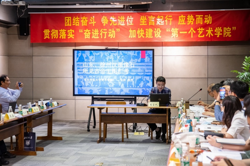 华东师范大学的朱浒教授作了“山东、徐州汉画像石所见古帝王图汇考”为题的报告,他指出,汉画像中的古帝王形象是山东、徐州等地汉画像的重要内容之一。遗憾的是,有大量的帝王图像由于榜题的缺乏,未被正确识读。近年来,随着考古工作的发展,有足够多的资料对汉代古帝王图进行一个全面的梳理,借用有榜题的材料去破译无榜题汉画中古帝王图的内容。他通过对武梁祠等四处有榜题古帝王图的分析,借助格套理论,可识别出七例无榜题的汉画古帝王图,并对帝王名称、排列次序、图像配置等问题进行考证,并尝试还原此类图像出现的历史情境。