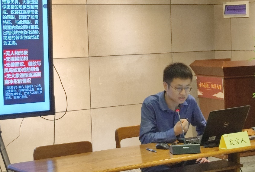 广州美术学院刘騻助理研究员作了“湖北省博物馆藏铜象尊考”为题的报告,其考证出湖北省博物馆藏铜象尊的年代为汉晋时期,明确大象造型的来源为交州南境,剖析其胡、越艺术特征共存的文化意涵。