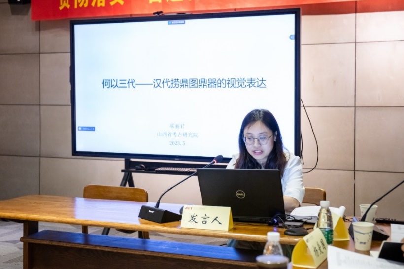山西省考古研究院的郝丽君副研究员作了题为“何以‘三代’——汉代捞鼎图鼎器的视觉表达”的报告,她指出,目前所见的捞鼎图汉画多见于山东、河南、江苏等地,时间集中于西汉中期至东汉晚期与汉代墓葬画像同步,载体材质涉及石棺、画像石、画像砖。此类捞鼎图主题鲜明,是最早被选择并且持续时间较长的题材之一。