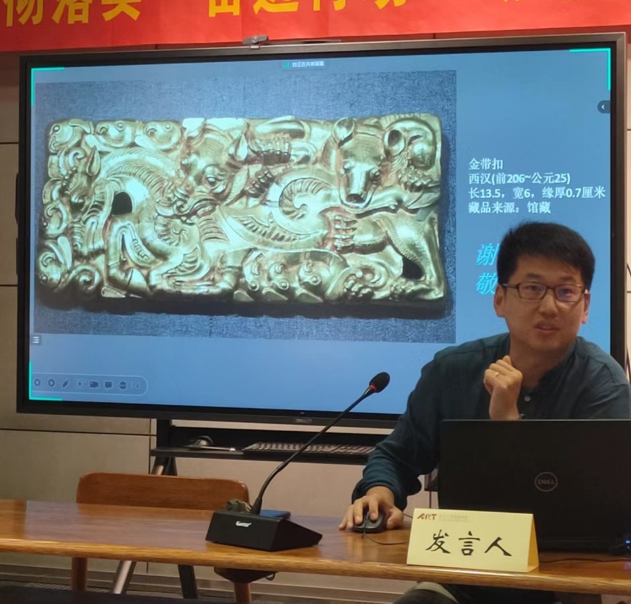 香港故宫文化博物馆王圣雨助理研究员作了题为“从饰到器:汉代黄金新用”的报告,汉代是中国历史上第一个大量使用黄金的时期。她以高等级墓中出土的师金葬具、金制装饰器件和金器为主要研究对象,结合部分香港故宫文化博物馆馆藏的有关器物,探讨承载图像的材质对于图像意义表达的重要性。并从原材料的获取、冶炼、制作工艺到一系列多来源题材的装饰和器物,指出金在汉代的诸多新用是汉王朝安内、通外以及整体社会风尚与信仰转变的体现。