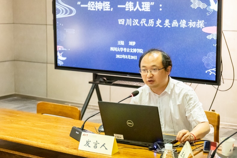 分论坛环节,四川大学历史学院王煜教授以左思《蜀都赋》的“一经神怪,一纬人理”为题,探讨了前人较少涉足的四川地区汉代历史故事类画像问题。