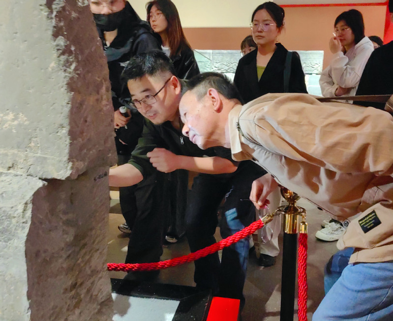 图(4)同学们被浑雄而精致的墓础柱吸引住了