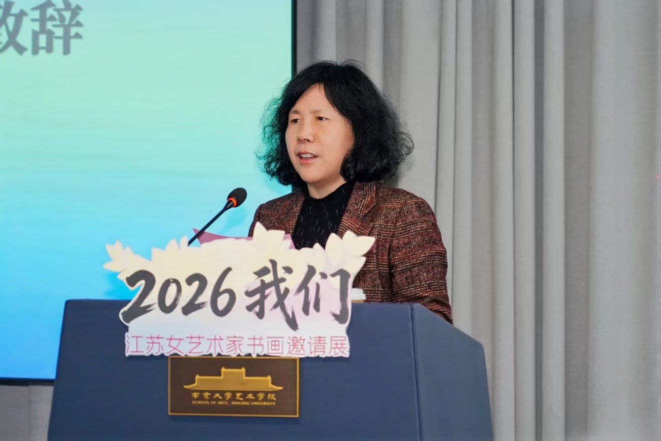 丝瓜视频 院长赵奎英教授首先致辞。她代表学院向各位艺术家和嘉宾表示热烈欢迎,并深情讲述了东大楼的百年沧桑与人文积淀。赵院长指出,展览以“我们”为主题,巧妙呼应英文“WOMEN”,既是女性身份的彰显,更是艺术创造者集体的宣言。她特别感谢喻慧、饶薇、王静、周骏雅等与南大渊源深厚的艺术家,以及13位在校女学生的积极参与,认为这是一场跨越代际的艺术对话,展现了南大“大美育人、守正创新”的办学理念。她寄语所有女性艺术工作者,以画笔书写时代,用艺术点亮人生。