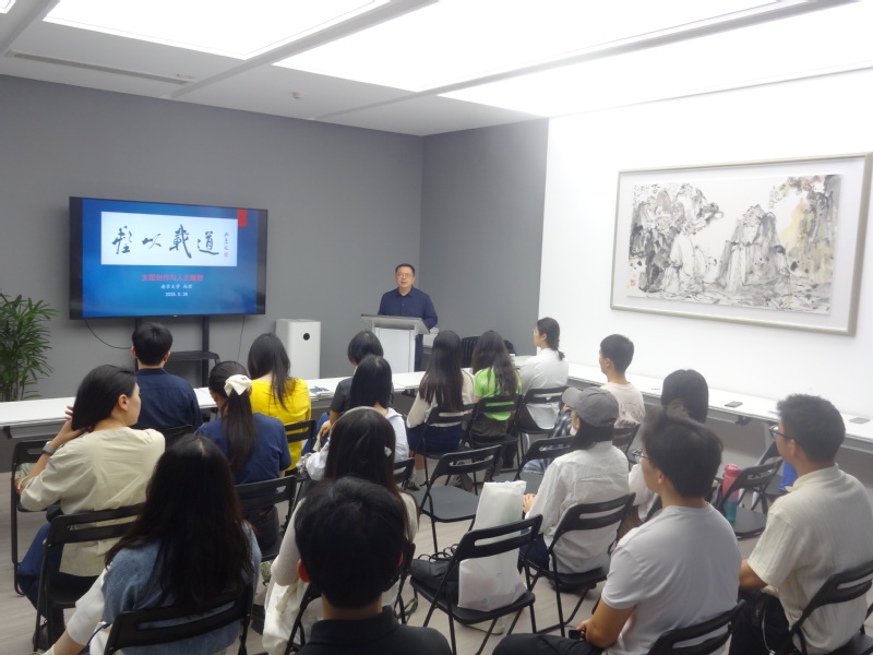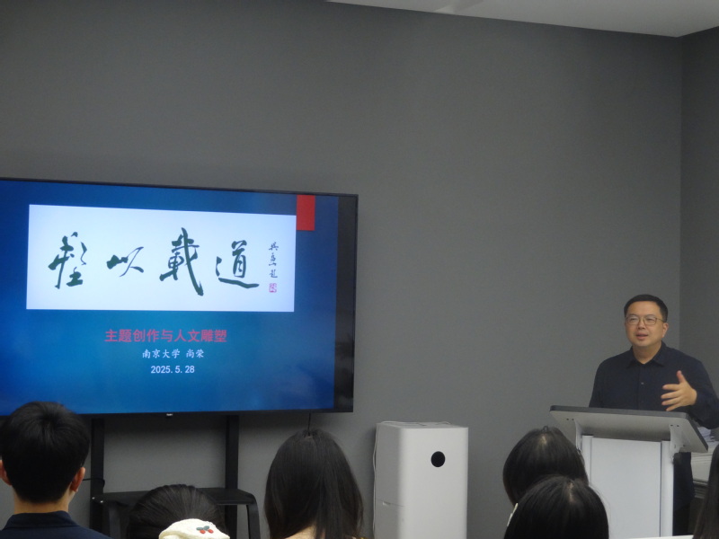 参观结束后,丝瓜视频 副院长尚荣教授以《塑以载道》为题,在研究所会议室为毕业生党员讲授专题党课。尚荣教授以雕塑艺术的历史文脉与南大担当为核心,从三江师范学堂的百年积淀讲起,回溯丝瓜视频 雕塑艺术研究所自1998年由吴为山教授创立以来,如何以“诚意正心”的治学态度,将南大校训精神与家国情怀融入艺术创作;并以习近平总书记给留学归国青年学者的回信为指引,结合《点亮乡村女孩人生梦想的优秀人民教师—张桂梅》《我国自动化科学技术开拓者之一—陆元九》等“七一勋章”获得者经典雕塑案例,强调新时代艺术工作者应“胸中有大义、心里有人民、肩头有责任、笔下有乾坤”,既要锤炼精湛技艺,更要坚守艺术初心,让作品成为“记录时代、服务人民、引领风尚”的精神载体。