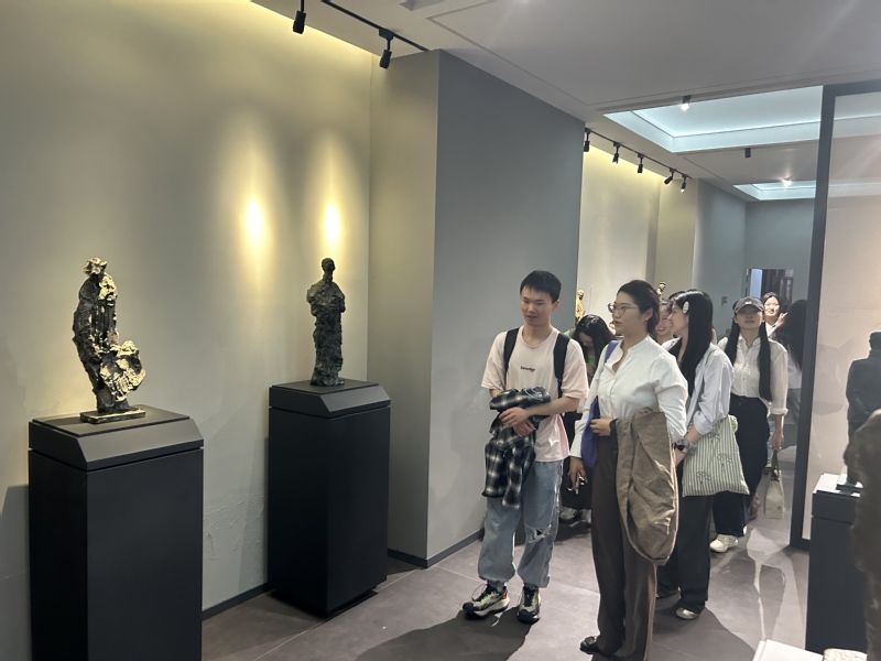 在雕塑艺术研究所的展厅里,《问道》《天人合一》《鲁迅》《费孝通》《侵华日军南京大屠杀遇难同胞纪念馆组雕原型小稿》等雕塑作品错落有致地陈列着。这些作品中,既有展现古代先贤思想交流的文化场景,也有记录历史伤痛的沉重记忆,还有刻画文化巨匠风采的生动形象,共同诠释着中华文明的精神内核与时代担当。党员们驻足观看每件作品,在具体可感的艺术形象中,清晰地感受到中华优秀传统文化的深厚底蕴和民族精神的传承脉络。