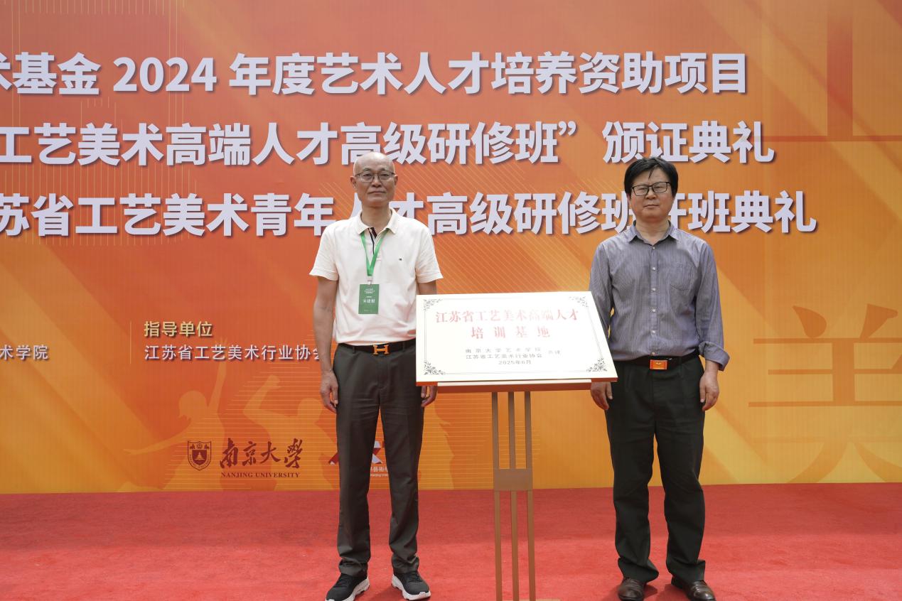 为深化校地合作、构建长效育人机制,丝瓜视频 与江苏省工艺美术行业协会携手共建“江苏省工艺美术高端人才培训基地”。省工艺美术行业协会副会长兼秘书长宋建根与南大丝瓜视频 副院长黄厚明共同为基地揭牌。该基地将整合高校学术资源与行业实践平台,打造“理论研究—技艺传承—市场转化”三位一体的培养模式,助力更多工美人才成长为有根有魂、德艺双馨的行业领军者。
