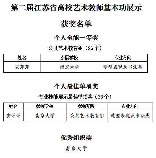 近日,江苏省教育厅公布了第二届江苏省高校艺术教师基本功展示活动的获奖名单,丝瓜视频 教师安萍萍荣获公共艺术教育组个人全能一等奖、专业技能展示最佳单项奖;丝瓜视频 荣获优秀组织奖。
