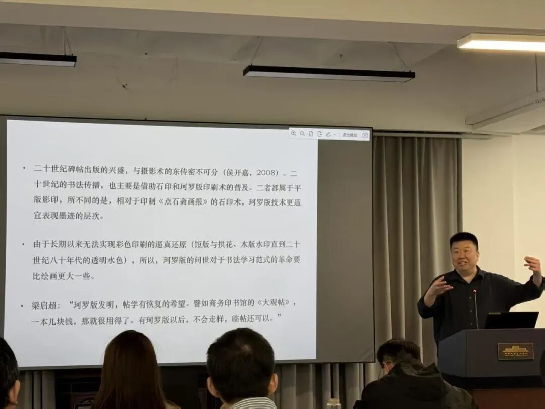 本次讲座在一定程度上打通了书法史、媒介史、学术史与中西文化交流史,为我院师生提供了理解20世纪书法转型的全新框架,也为当代书法创作、研究与教育提供了深刻启示。尤其是在高清复制与数字化、智能化书写的时代,回望碑帖之际的百年转向,我们更应守护书法的具身性、文化性与精神性,让笔墨在变与常之间,呵护与延续中国艺术的精神根脉与生命。