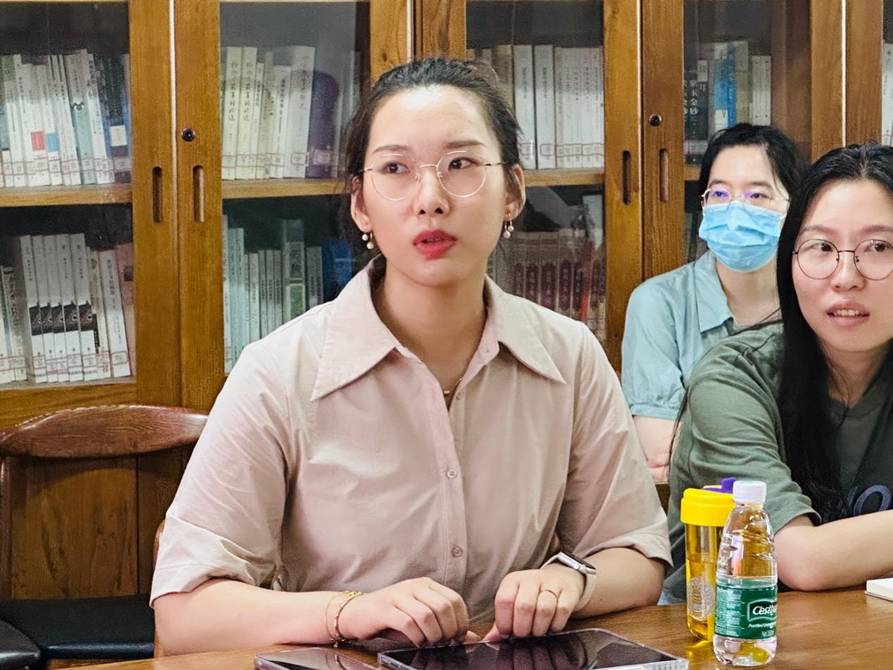 教职工支部李丹提出人文科研者在建立文化记忆过程中的重要作用,以“魏晋风度”“盛唐气象”为例,认为这些范畴从小处讲可以锚定学者的学术身份,但从更广阔的意义上是对人们语言习惯的覆盖,进而影响相同语言下的文化认知,因此有质量的学术成果具有绵长悠久的生命线。